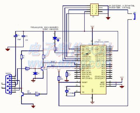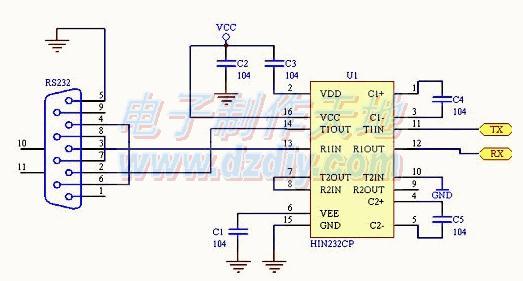 如果你有232芯片,可以按以下线路代替上面的分立件RS232部分: