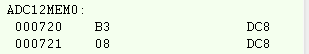 所以ADC成功将A3口上的信号转换为数字量并存储在ADC12MEM0中。