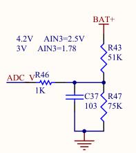 由上图可知通过PB1口采集电压,其中采集的电压为锂电池经过分压后的电压。