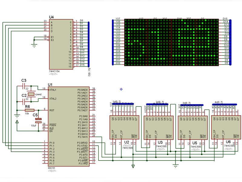 51单片机16X32LED点阵显示屏由单片机最小系统、行驱动电路74HC154、列驱运电路74HC595组成,实现汉字、数字的显示。电路简单。程序中以20个汉字作为显示示例。资料含51单片机C语言源程序、PROTEUS7.8仿真源文件。附送取模软件及取模说明文档,方便你自己更换显示内容。显示移动速度可在程序中进行设置。