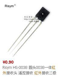 上图的引脚从左到右依次为:OUT(空闲时为高电平,接收到载波时为低电平)、GND、VCC。