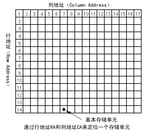 SDRAM的内部是一个存储阵列。阵列就如同表格一样,将数据“填”进去。在数据读写时和表格的检索原理一样,先指定一个行(Row),再指定一个列 (Column),我们就可以准确地找到所需要的单元格,这就是内存芯片寻址的基本原理