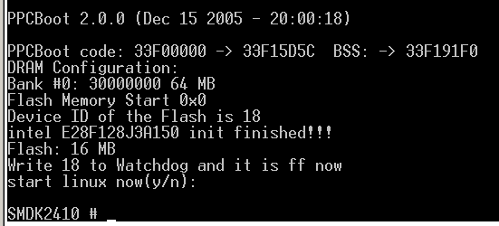 现在总结这些步骤吧,最开始在上电的时候不要立马启动系统,先要进入PPCBOOT模式命令行,然后再启动AXD调试器。
