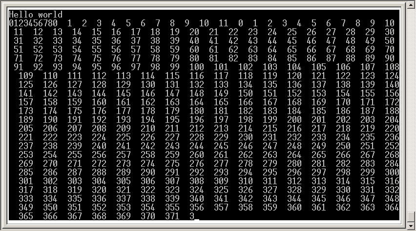 从而让ARM一直向PC机发送从0-255数据,在PC机中显示结果如下: