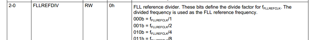 这一位默认是0 不分频 然后就是FLLREFCLK