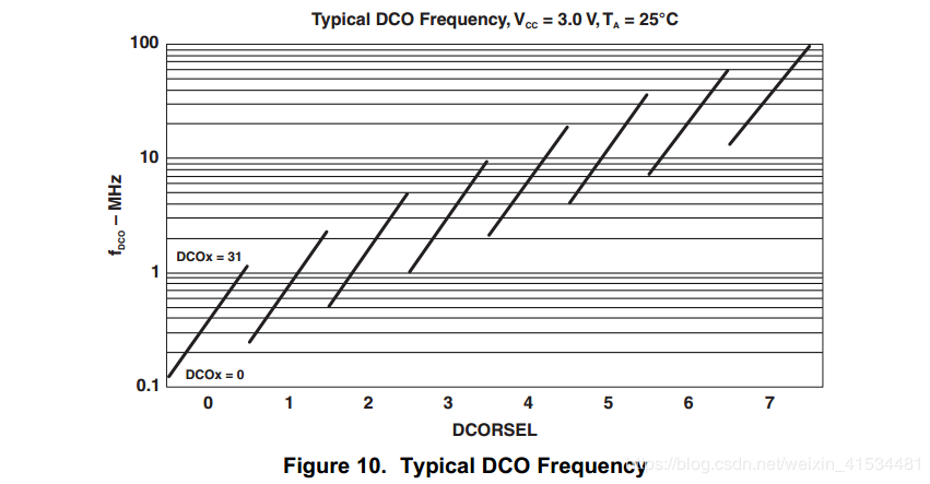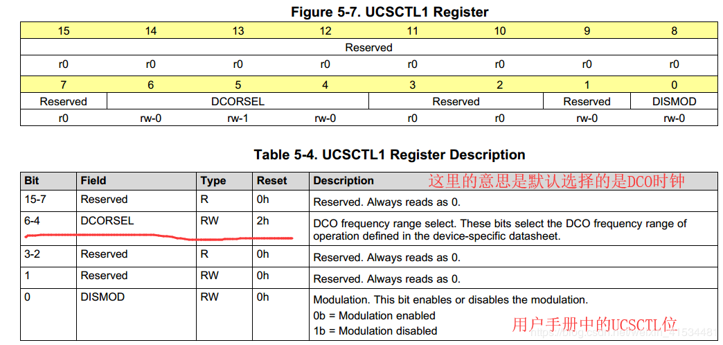 我查找UCSCTL这个寄存器的第一个值是UCSCTL1 的DCOSEL位 这一位是2 在芯片的Datesheet里面我找到了这个,貌似是没什么太大的用处。