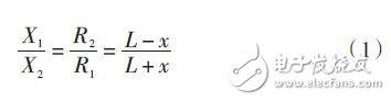 如图2 所示,如果PSD 的面电阻是均匀的,且阻值R1 和R2 远大于负载电阻RL,则R1 和R2 的值仅取决于光点的位置,即: