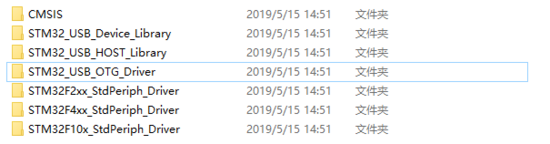 STSW-STM32046: 主要是针对STM32F105/7, STM32F2 and STM32F4 USB on-the-go Host and device library,对应的说明文档为UM1021。下载地址为https://www.st.com/content/st_com/en/products/embedded-software/mcus-embedded-software/stm32-embedded-software/stm32-standard-peripheral-library-expansion/stsw-stm32046.html,该版本的驱动最新版本为2.2.0。下文就是以该驱动为例。