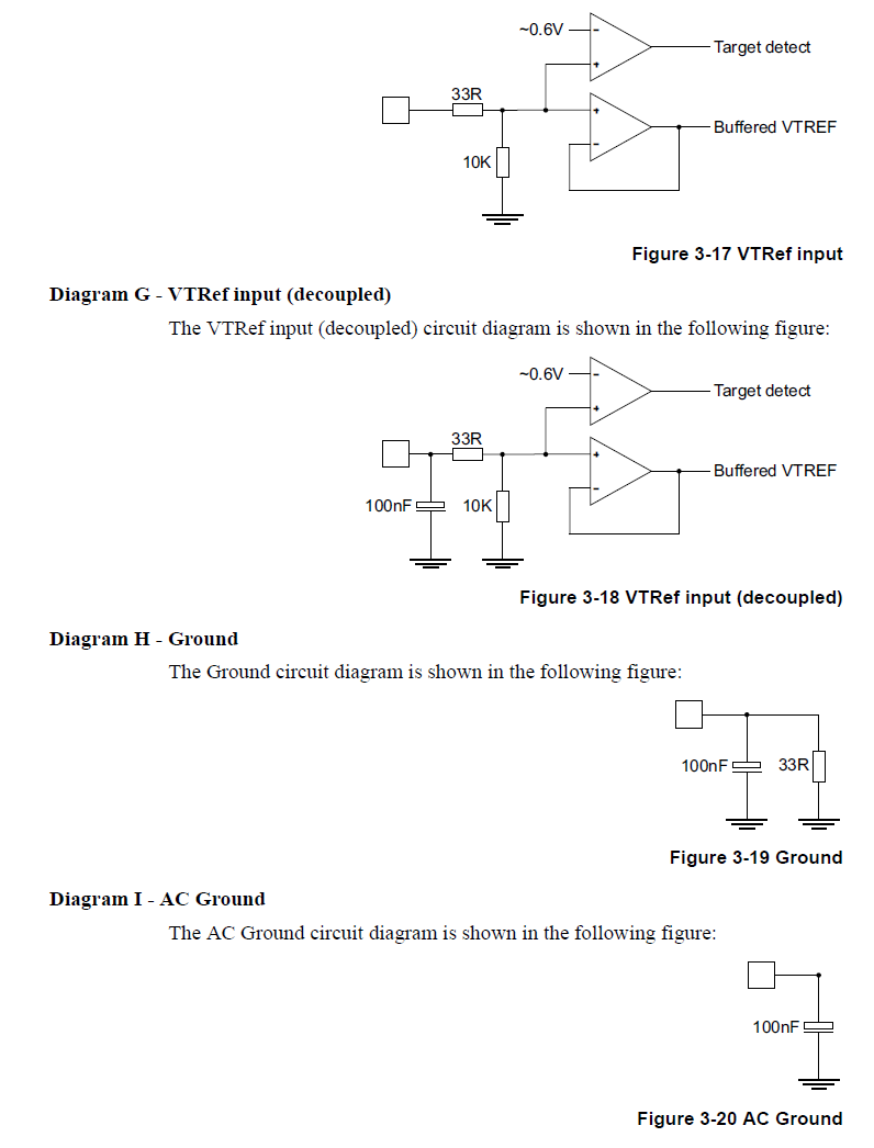 • The VTREF signal is typically connected directly to the VDD rail. If a series resistor is used to protect against short-circuits, it must have a value no greater than 100Ω.