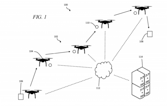 例如,2018 年 12 月,沃尔玛申请了一项专利,以开发无人机的“交付链”。在交付链中,每架无人机都可以与一个集中节点通信,来接收交付信息并识别该商品应传递给哪一个无人机。