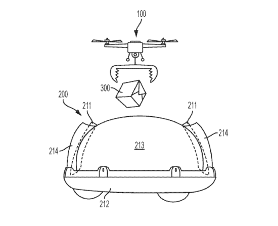 同样是在 2018 年,该公司为无人机和地面自动导引车(AGV)之间的交接系统申请了专利。该专利可以将无人机运输的商品转移到自动引导车上,以增加包裹递送的方式。