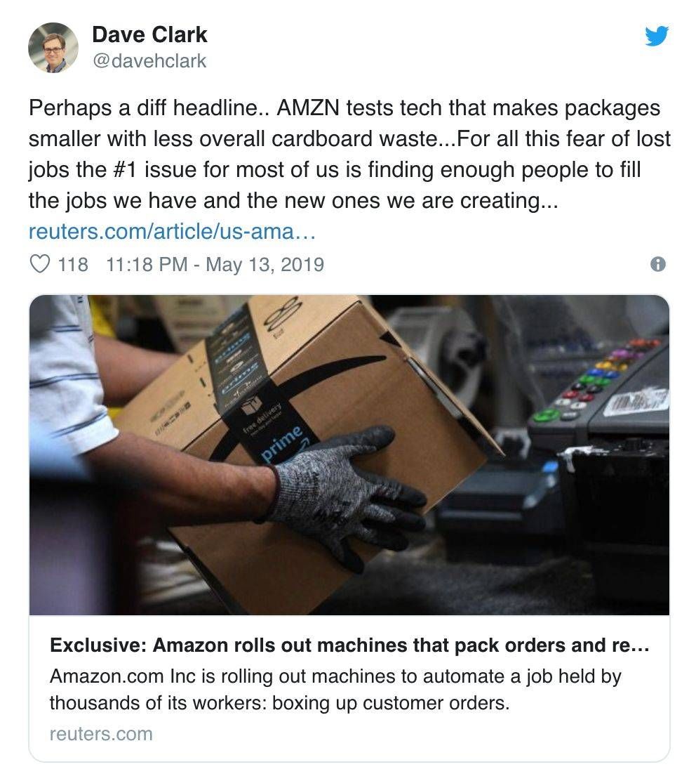 图 | 亚马逊全球运营资深副总裁 Dave Clark 的 Twitter (来源:Twitter)