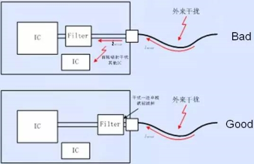 7.滤波器件需并排放置,以防止滤波后的电路被再次干扰。