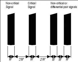 对于关键信号线,如果单板有内部信号走线层,则时钟等关键信号线布在内层,优先考虑优选布线层。另外,关键信号线一定不能跨分割区走线,包括过孔、焊盘导致的参考平面间隙,否则会导致信号回路面积的增大。而且关键信号线应距参考平面边沿≥3H(H为线距离参考平面的高度),以抑制边缘辐射效应。