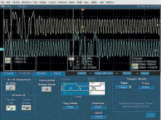 图2,一个双触发的屏幕截图显示了高速串行通道的时滞损伤。请注意触发复位条件;如果在第二个事件发生之前时限期满,序列本身就会重新启动。