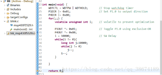 所有选项检查一遍,建一个Basic Examples下的Blink The LED工程,然后ok确认,就会出现下面这个界面,当然这个程序是经过我修改的,其效果就是板子上面的两个LED灯同时闪烁,不改的话只有一个闪烁。