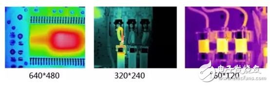 首先要确定购买红外热像仪的像素级别,大多红外热像仪的级别和像素有关。民用红外热像仪中相对高端的产品像素为640*480=307,200,此高端红外热像仪拍摄的红外图片清晰细腻,在12米处测量的最小尺寸是0.5*0.5cm;中端红外热像仪的像素为320*240=76,800,在12米处测量的最小尺寸是1*1cm;低端红外热像仪的像素为160*120=19,200,在12米处测量的最小尺寸是2*2cm。可见像素越高所能拍摄目标的最小尺寸越小,下图为三个级别像素红外热图片的比较: