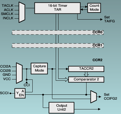 我想用430测一个从外部输入的脉冲在1秒钟时间的脉冲数,我用Timer_A定时一秒,然后把输入引脚定义为捕获模式,每测到一个脉冲TAR应加1,(TAR初值是0吧???)同时TAR把此值写入CCR1,那么我到定时时间到时直接读取CCR1的值就是一秒钟内的脉冲数, ...… 查看全部问答> |