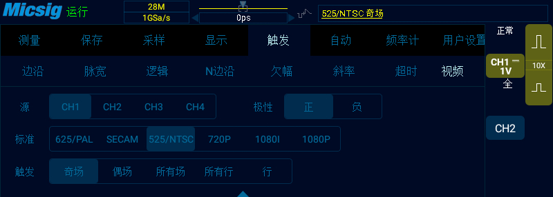 现今有很多示波器,具有先进的触发能力:能根据由幅度定义的脉冲,由时间限定的脉冲(脉宽触发)和由逻辑状态或图形描述的脉冲(逻辑触发)进行触发。扩展和常规的触发功能组合也帮助显示视颍和其他难以捕捉的信号,如此先进的触发能力,在设置测试过程时提供了很大程度的灵活性,而且能大大地简化测量工作,给使用带来了很大的方便。