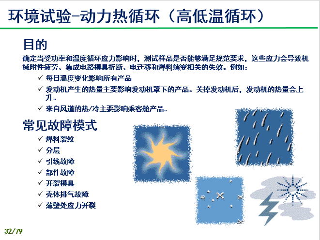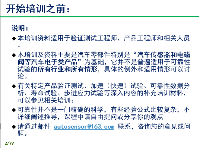 可靠性试验,是指通过试验测定和验证产品的可靠性。研究在有限的样本、时间和使用费用下,找出产品薄弱环节。可靠性试验是为了解、评价、分析和提高产品的可靠性而进行的各种试验的总称。互联网上有关验证实验的概念、目的、内容、步骤、程序、抽样方法有大量参考资料。 本资料专门针对汽车电子零部件,特别是汽车传感器的验证试验做介绍,本篇为上篇。