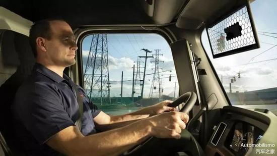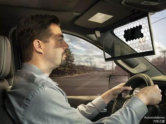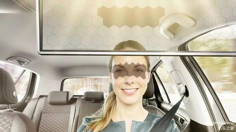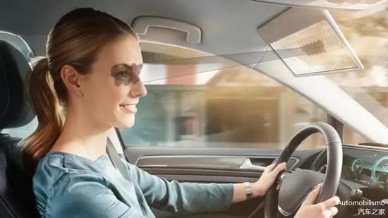 面板较暗的地方在人的眼部区域留下了阴影,可以直观地避免强光干扰且几乎不阻挡视线,因为其他遮阳板部分完全透明,好一个“科技改变生活”的设计……