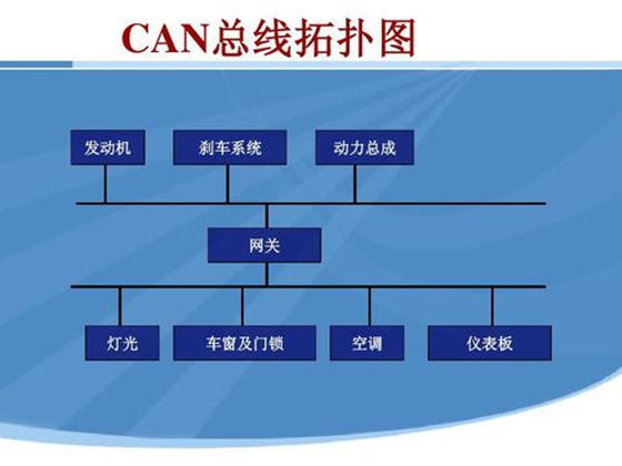 在20世纪90年代以来,汽车上由电子控制单元(ECU)控制的部件数量越来越多,例如电子燃油喷射装置、防抱死制动装置、安全气囊装置、电控门窗装置、主动悬架等等。随着集成电路和单片机在汽车上的广泛应用,车上的ECU数量越来越多。因此,一种新的概念--车上控制器局域网络CAN(Controller Area Network)的概念也就应运而生了。CAN最早是由德国BOSCH公司为解决现代汽车中的控制与测试仪器之间的数据交换而开发的一种数据通信协议,按照ISO有关标准,CAN的拓扑结构为总线式,因此也称为CAN总线。