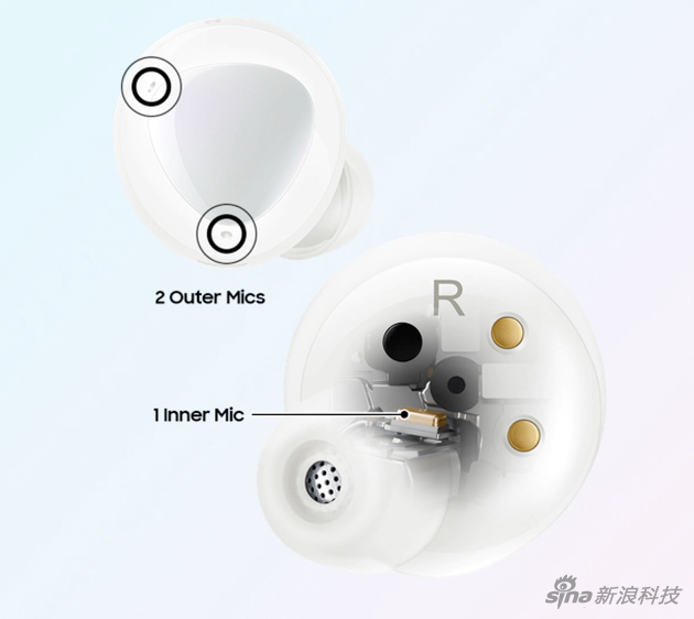Galaxy Bud+支持多设备连接、两个动态扬声器和一个三麦克风阵列。耳机外部可以触控操作,另外还多了蓝色和红色两种先颜色。