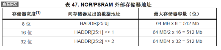 这里 HADDR 是内部 AHB 地址总线,其中 HADDR[25:0]来自外部存储器地址