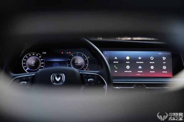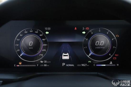 同样,仪表盘也可以取消转速表显示,将速度表主表盘移至中央,两侧分别显示多媒体和行车电脑等信息。