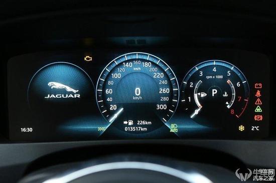 效仿机械仪表,似乎是厂家的首选,因为这也更符合大多数驾驶员的信息读取习惯。捷豹的全液晶仪表也是按照机械仪表盘的形式,并可以将速度表位列正中,两侧分别显示转速表和行车电脑等。捷豹的仪表盘也是加入了十分科幻的背景色以突出科技感,时钟、里程表和指示灯位列仪表盘边缘,整体设计并不凌乱,看起来非常舒服。
