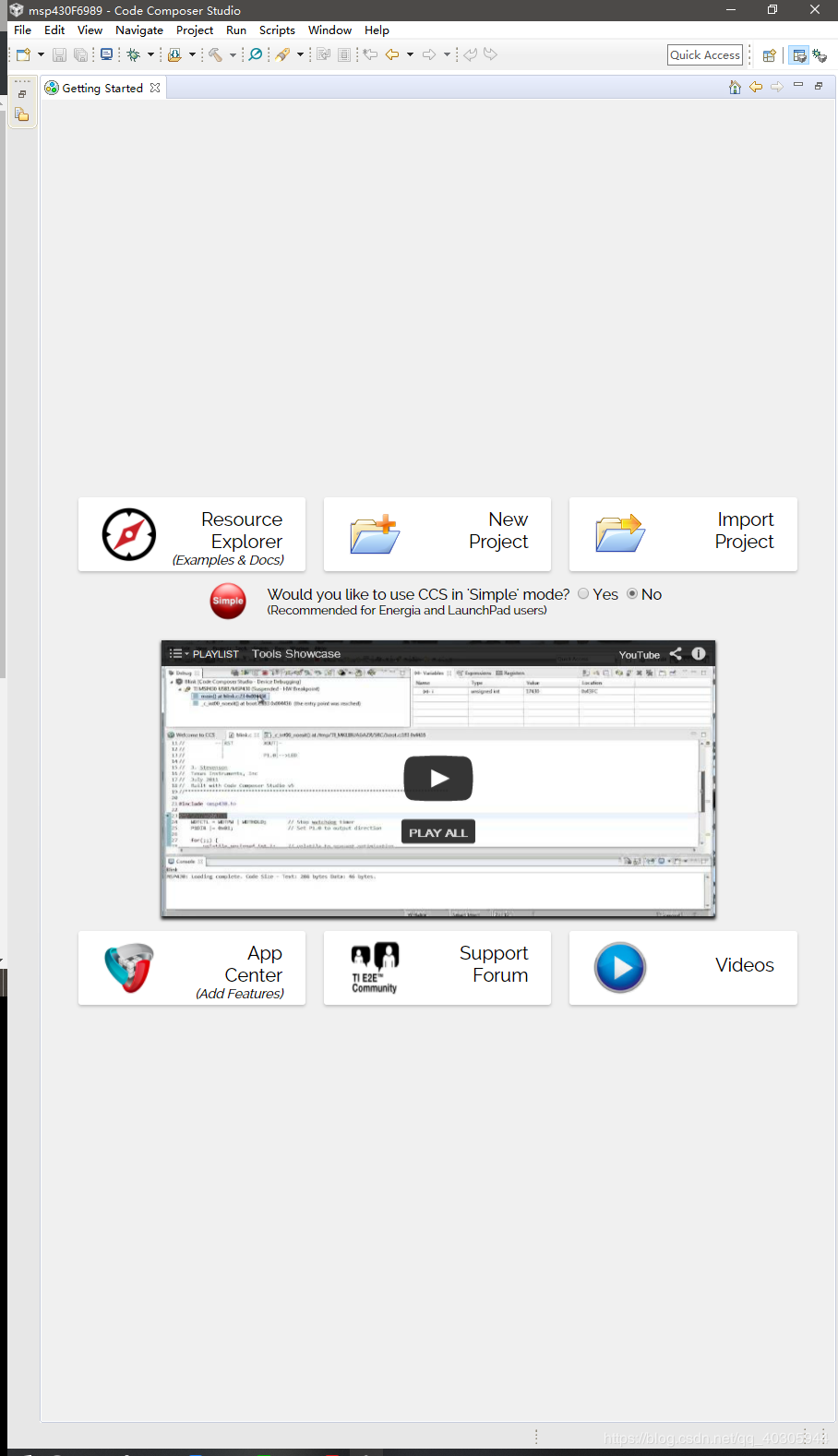 CCS中还有一个workspace工作空间的概念,一个workspace中会包含一个用户编写的多个工程,类似于windows的登录用户,workspace中会将用户的设定存储下来,这样每次打开一个workspace,上次用户关闭时的界面将原封不动的恢复出来。