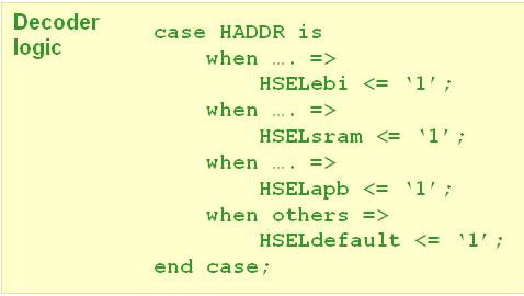 译码器的内存映射表具有相对的独立性。如果AHB总线上的从设备发生了变化,必须对内存映射表进行修改以确保每个地址都对应正确的从设备。下面是内存映射表的一个例子。