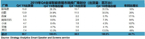 2020年02月14日 | Strategy Analytics:2019年Q4全球智能音箱销量再创历史新高