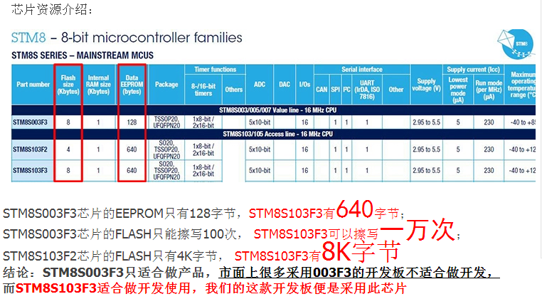 STM8S103F3P6 性能对比: