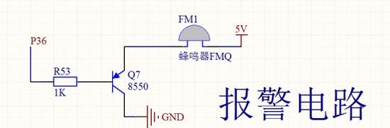 此电路可以由单片机控制三极管(8550/9012)的通断来控制蜂鸣器的报警。当P36为高时,三极管不高通,为低时三极管导通蜂鸣器响。当过流或短路时,单片机切断输出,同时蜂鸣器报名。