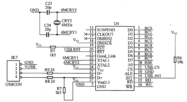 2020年02月17日 | PDIUSBD12与PlCl6F877单片机的接口原理电路图