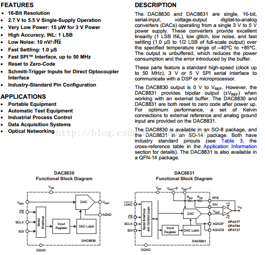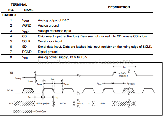 DAC8830引脚说明和时序: