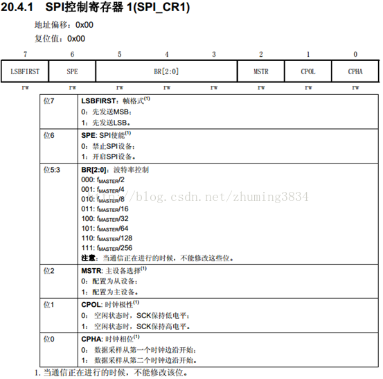 设置时钟极性CPOL和相位CPHA仅需设置SPI_CR1的第0位和第1位。