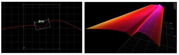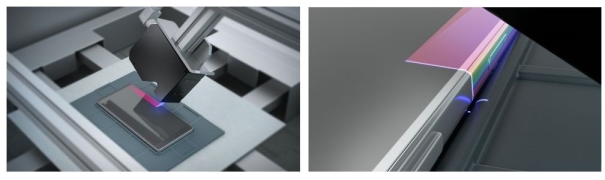 线激光传感器同时扫描框手机外框及玻璃边缘,生成高分辨3D扫描数据,配合Metus点云算法,检测间隙、面差和段差、平面度等。还可以将扫描得到的点云导出到三维检测软件中,在质量控制流程中能够实现部件的快速分析和测量,快速准确地完成首件检验。