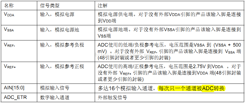 表64 ADC引脚(《参考手册》)