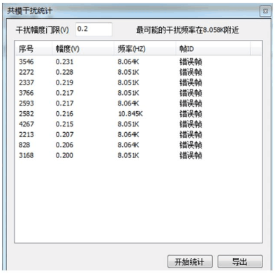 图3错误帧是在帧结束位置出现电平台阶。此错误由主动错误标志+错误标志叠加而成,二次抬高的是 6 个连续显性电平,因某节点错误后全局通知,各节点错误标志叠加造成的。通常,当节点受较强的电磁场干扰后易发生此类错误,如变频器、逆变器、电机等功率器件。此时,我们亦可配合FFT分析工具分析干扰频点,以此定位到干扰源并屏蔽它,如图4。
