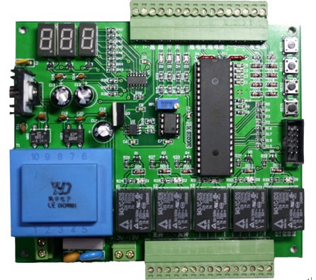 此控制器在该产品应用中,并没有把所有资源都用完,5路继电器只使用了两路分别用来控制电机的正转和反转,其它3路可备用,另外模拟电压输入、开关量输入也可备用。