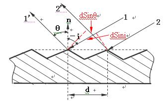 由式(1)和(2)可得相邻两光线干涉极大值的条件——光栅方程式为:
