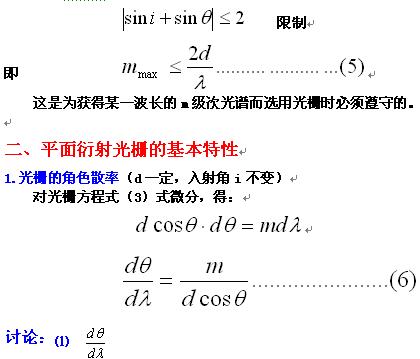 与光栅常数d成反比,在遵守(5)式条件下,d选小的可获得大的色散率。