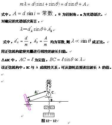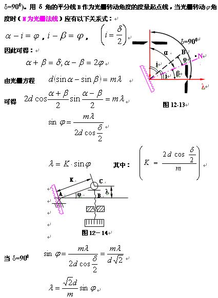 单色仪和分光光度计中,入射和出射狭缝位置都是固定的,所以一旦光栅安装好后,入射光与出射光之间的夹角δ就固定不变了,如图12-13所示(图中