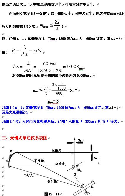 从 级开始,不同波长的同一级主最大,按波长次序由短波向长波散开(图12-8)。