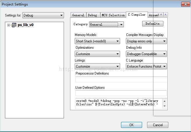 第二步,点击C Compiler,选择General的d倒三角图标,出现界面如下