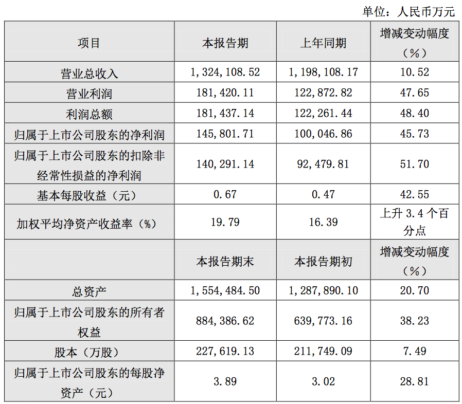 生益科技表示,关于公司实现的营业利润、利润总额、归属于上市公司股东的净利润、归属于上市公司股东的扣除非经常性损益的净利润以及基本每股收益比上年同期增长30%以上,主要原因是:(1)公司本期优化覆铜板产品销售结构,使得本期主营业务盈利能力有所提升;(2)本期5G通信市场迅速放量,下属子公司生益电子股份有限公司及时抓住市场机会, 促进技术提升、持续创新和产能优化,实现营业收入及盈利能力的大幅提升;(3)公司覆铜板各类产品的销售数量比上年同期有不同程度的增加;(4)公司通过有效控制成本费用,不断降低单位制造成本,使得本期主营业务盈利能 力有所提升;(5)公司本期持股期间的公允价值变动收益比上年同期大幅增加; (6)公司本期可转换公司债券转股,相应减少利息支出。
