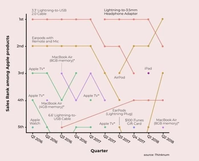 作为苹果销量最大的产品,以 Apple Watch、AirPods 和 Lightning 数据线为主的其他硬件收入每年可以为苹果带来 350 亿美元以上的营收。而其中除了第一方配件,还有 MFI 配件带来的利润。