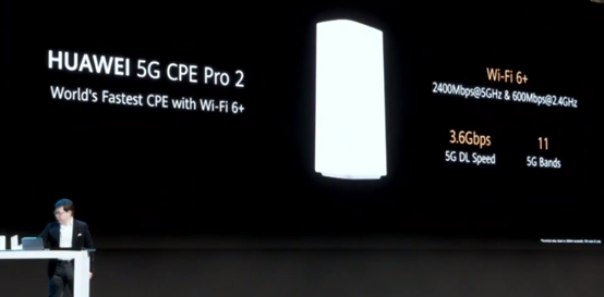 5G CPE Pro 2是面向消费者的WiFi 6+路由,支持11个5G频段,5G下行达3.6Gbps。在5GHz频段下速度达2400Mbps,2.4GHz频段下速度达600Mbps。
